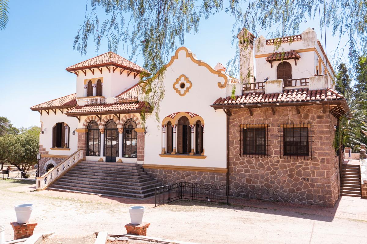 Como la totalidad de los terrenos se fue adquiriendo en varias etapas, los sectores de la misma están determinados por muros y artísticos portones de hierro separando de esta forma los amplios parques y jardines del entorno. Ante la posibilidad de alojar allí al exiliado Rey de España Don Alfonso XIII, abuelo del actual Rey Juan Carlos, se puso mayor énfasis en su ornamentación dándole un estilo más hispano. Este acontecimiento nunca ocurrió, sino que finalmente lo hizo en Italia.